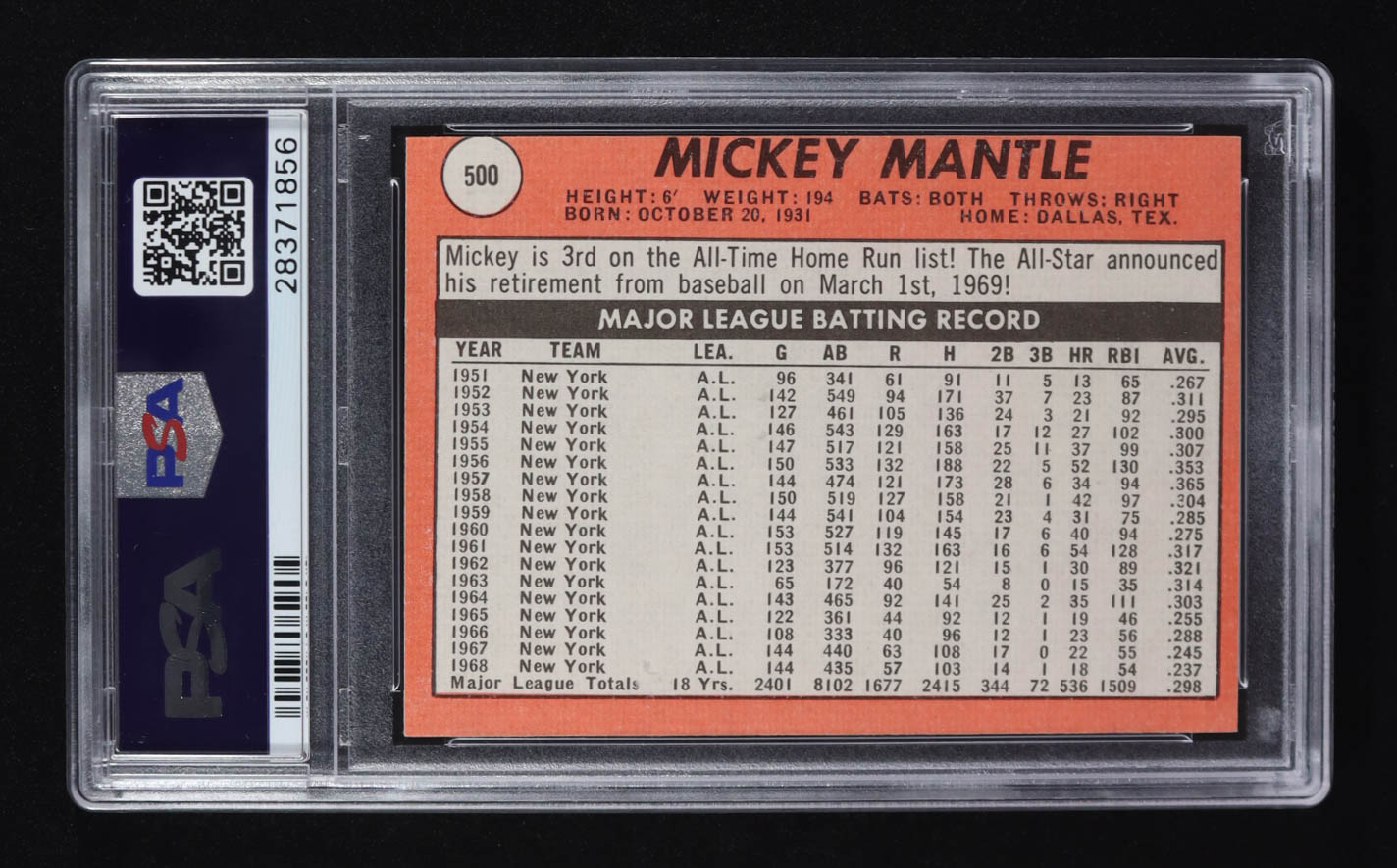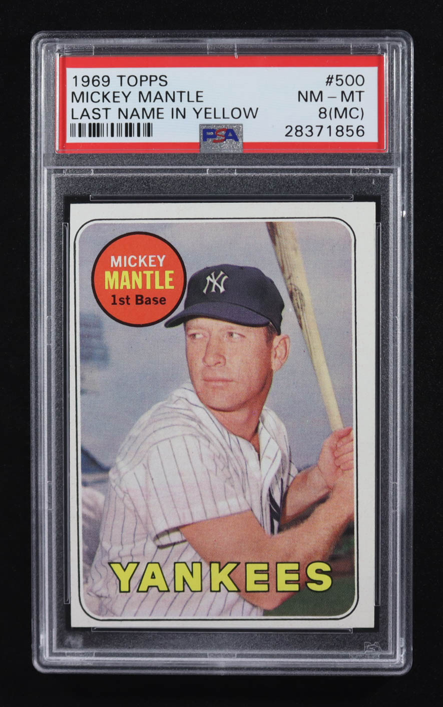 Mickey Mantle 1969 Topps Last Name In Yellow #500 (PSA 8)