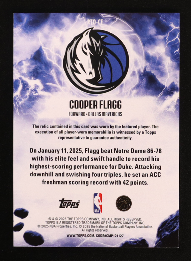 Cooper Flagg 2025-26 Topps Rise to the Occasion Relics #RTOCF RC