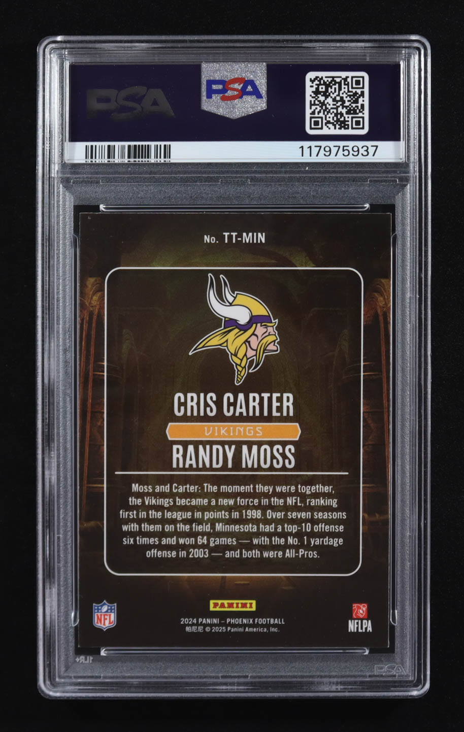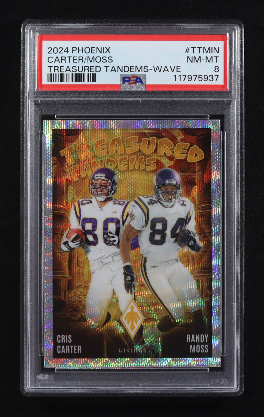 Cris Carter / Randy Moss 2024 Panini Phoenix Treasured Tandems-Wave #TT-MIN (PSA 8)