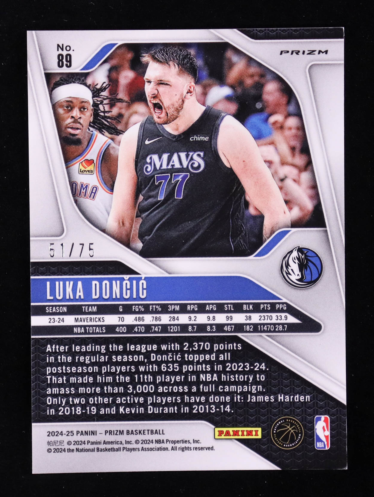 Luka Doncic 2024-25 Panini Prizm Prizms Red Power #89 #51/75