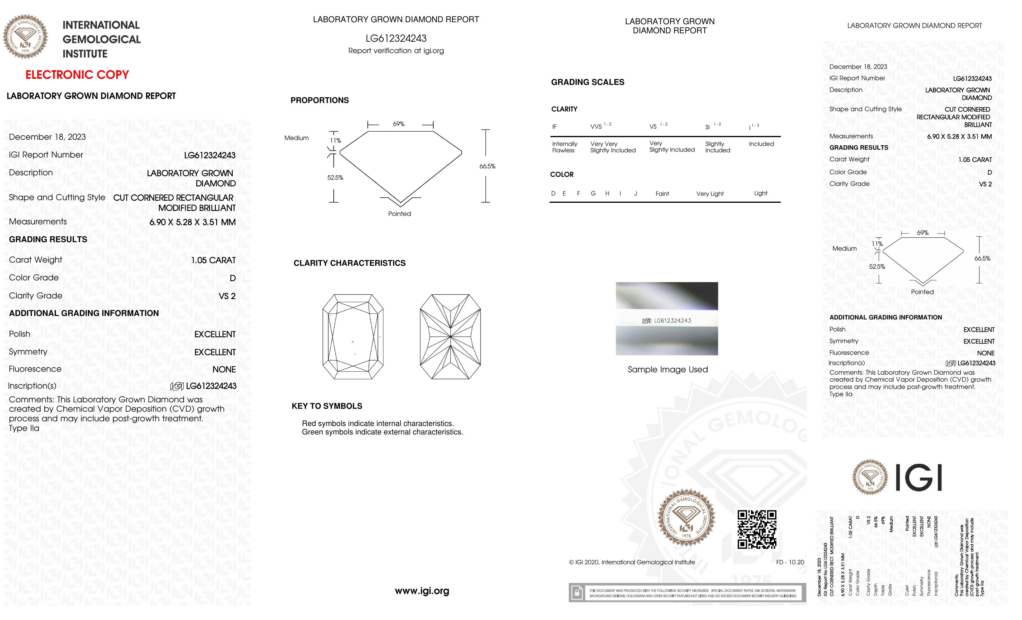This piece includes paperwork from the International Gemological Institute (IGI).