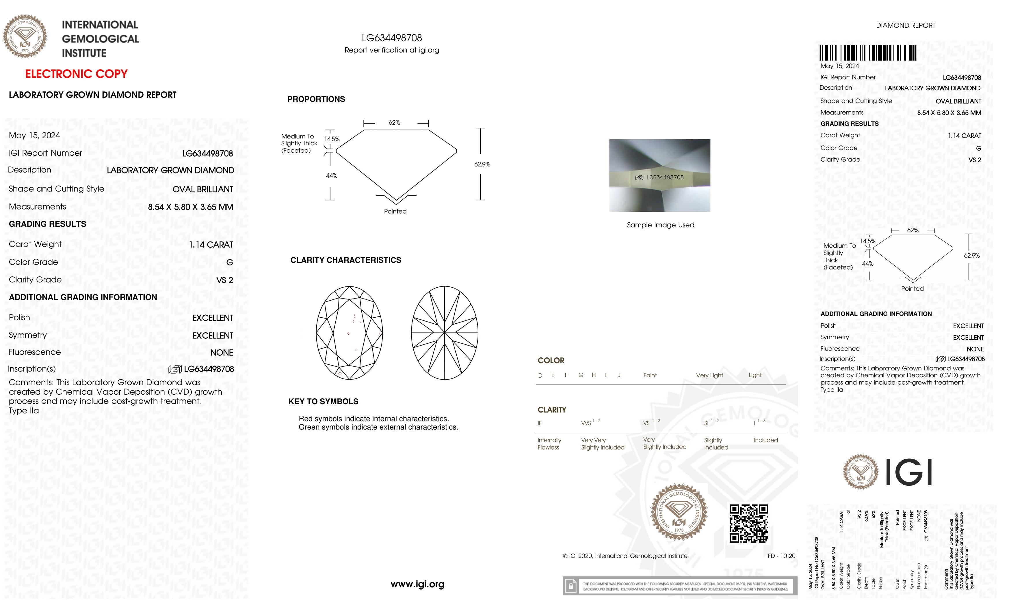 1.14 Carats Lab Grown Diamond Loose G, VS2 | (IGI Cert)