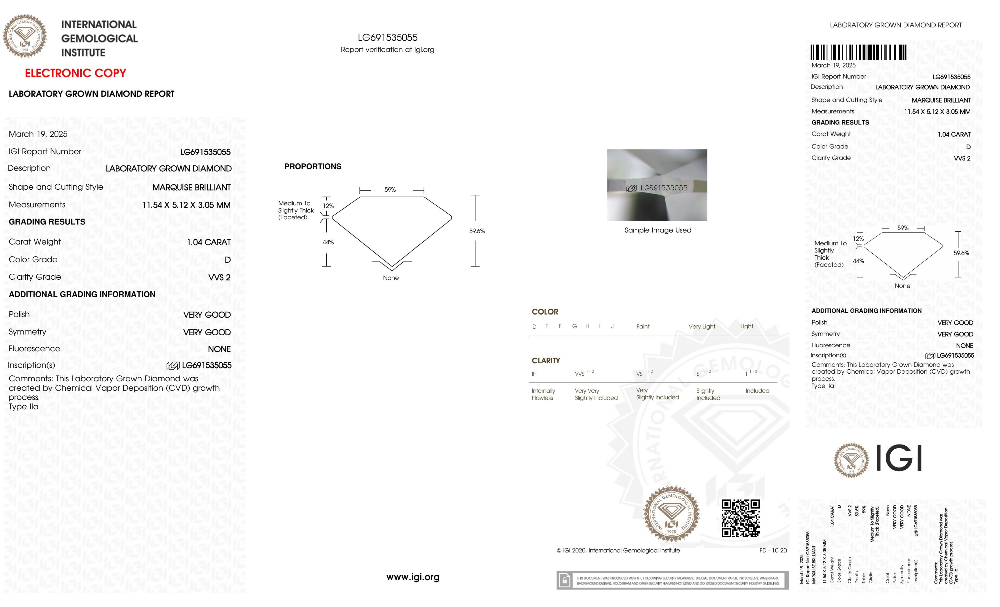 This piece includes paperwork from the International Gemological Institute (IGI).