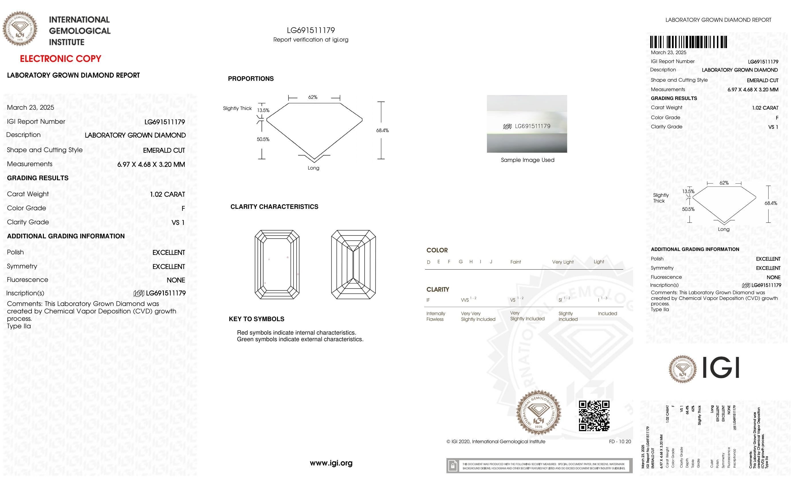 This piece includes paperwork from the International Gemological Institute (IGI).
