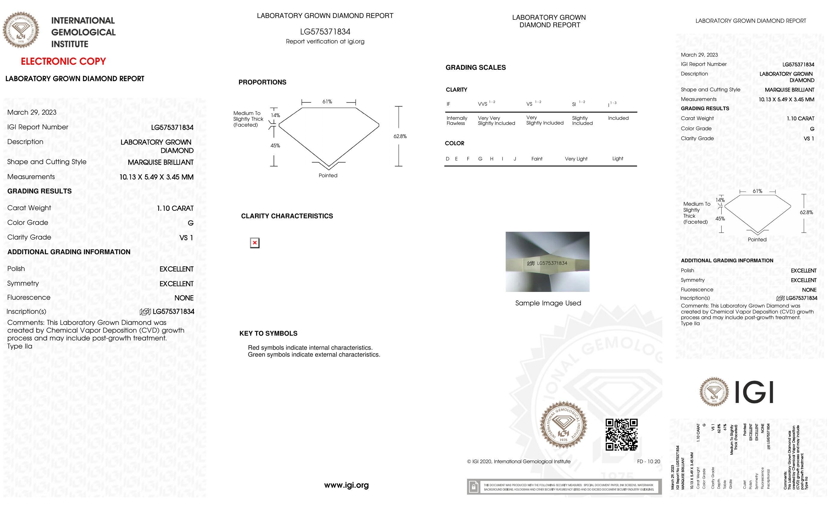This piece includes paperwork from the International Gemological Institute (IGI).