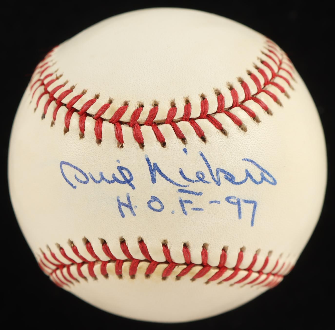 Rawlings Official Major League Baseball. Hand-signed and inscribed by Phil Niekro (D. 2020, Atlanta Braves, HOF). Please note, ball has been naturally stained toned. Refer to photos regarding the condition of the item.