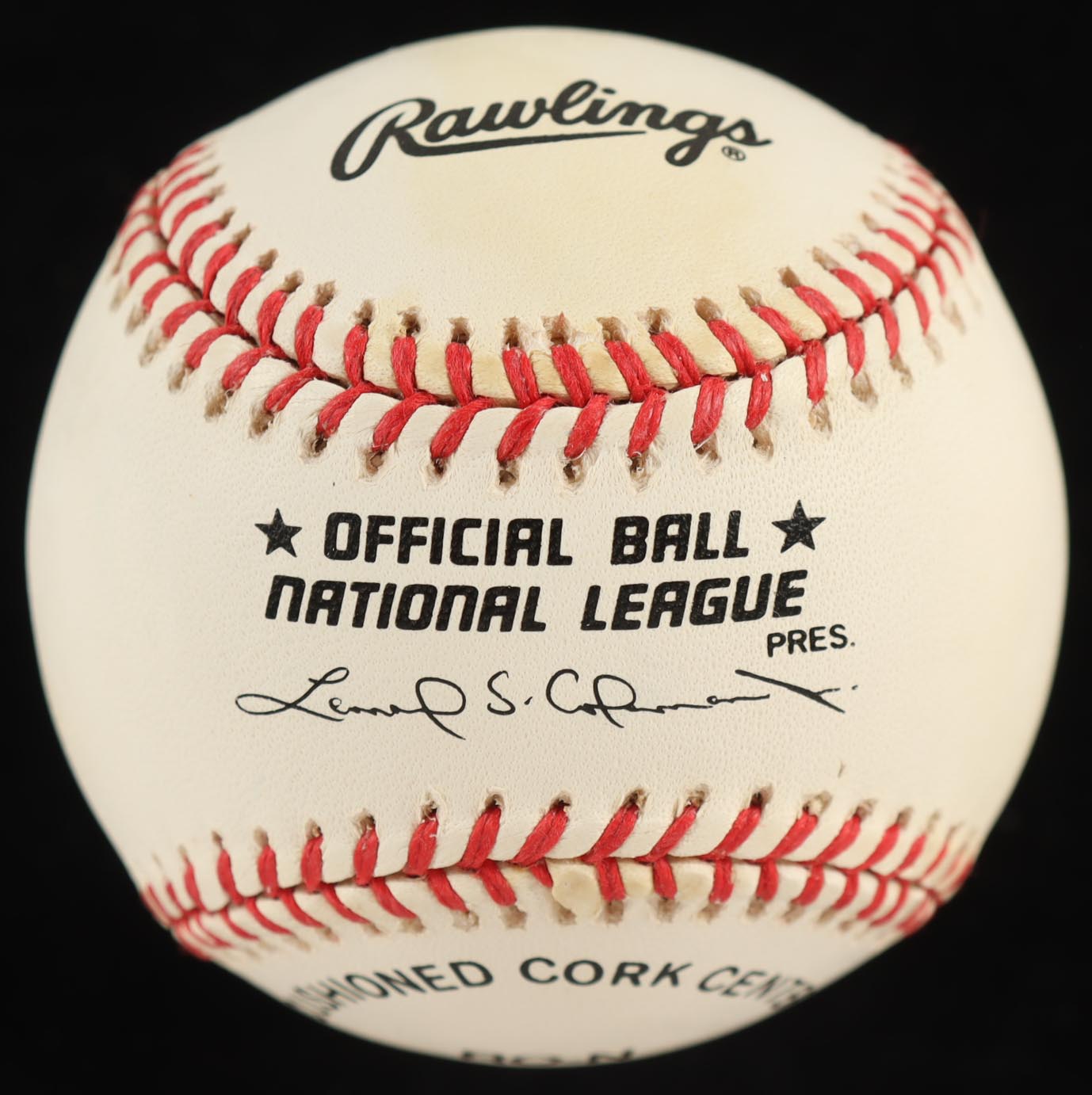 Rawlings Official National League Baseball. Hand-signed and inscribed by Pete Rose (D. 2024, Cincinnati Reds). Please note, ball has been naturally stained toned. Refer to photos regarding the condition of the item.