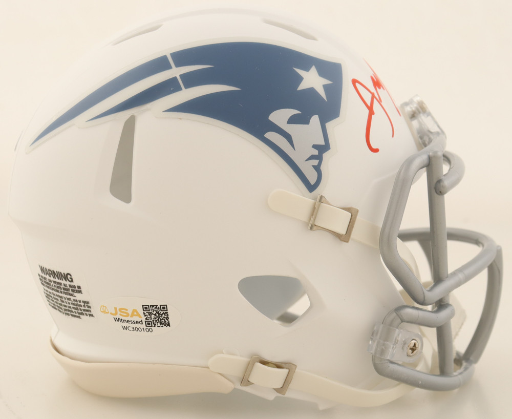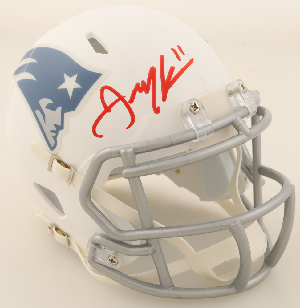 Riddell New England Patriots Rivalries Alternate mini helmet. Hand-signed by Julian Edelman.