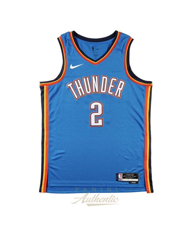 Nike jersey with everything pressed on, size XL. Hand-signed and inscribed by Shai Gilgeous-Alexander (Oklahoma City Thunder). This item is limited edition and has been numbered #/25.