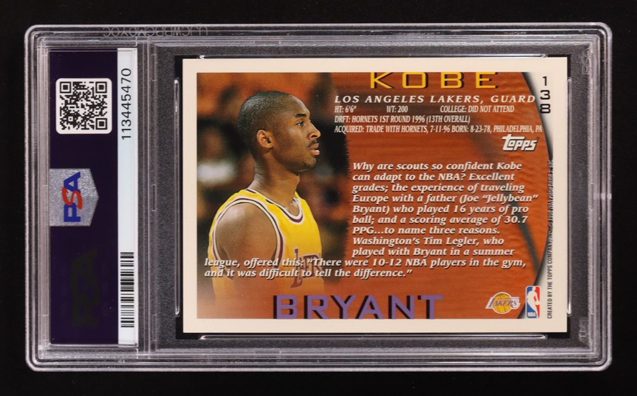 Kobe Bryant 1996-97 Topps #138 RC (PSA 10)