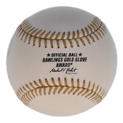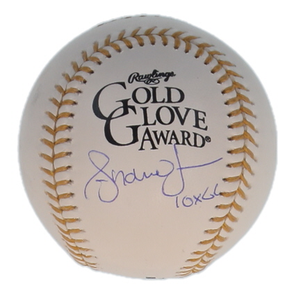 Rawlings Official Gold Glove Award Baseball. Hand-signed and inscribed by Andruw Jones (Atlanta Braves, HOF). Please note, there is staining on the baseball. See photos regarding the condition of the item.