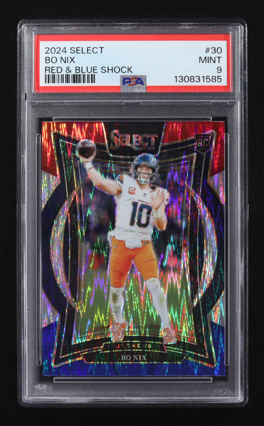 Bo Nix 2024 Select Prizm Red and Blue Shock #30 RC (PSA 9)