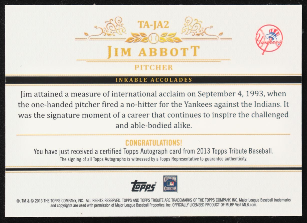 Jim Abbott 2013 Topps Tribute Autographs #JA2 #83/99