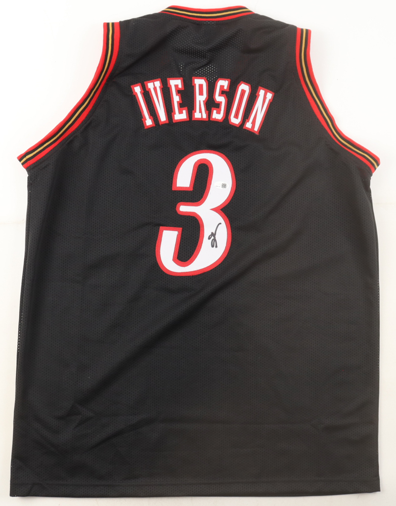 Custom jersey with everything sewn on, size XL. Hand-signed by Allen Iverson (HOF).