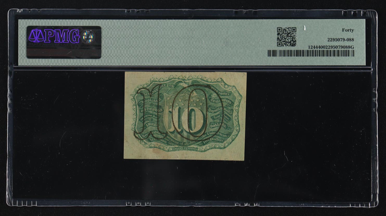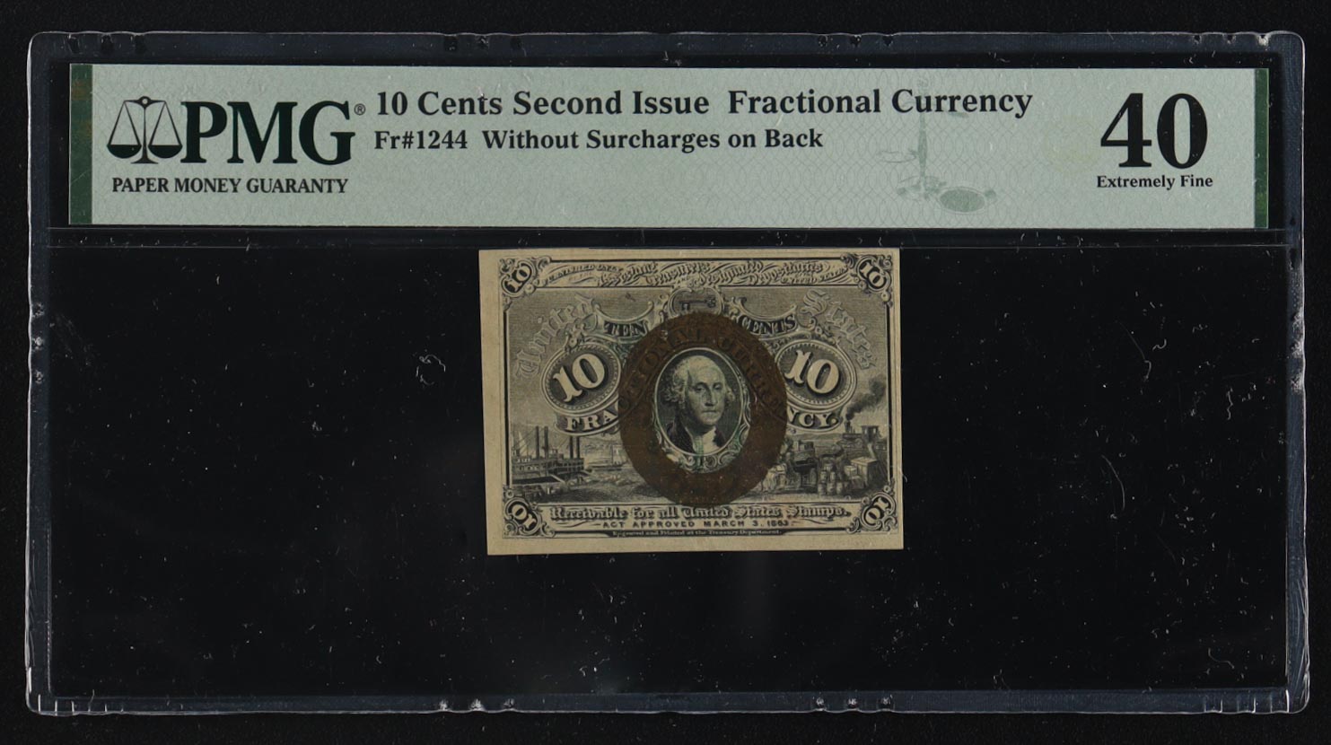 Second Issue 10 Cents Fractional Currency Note without Surcharges on Back (PMG Extremely Fine 40)