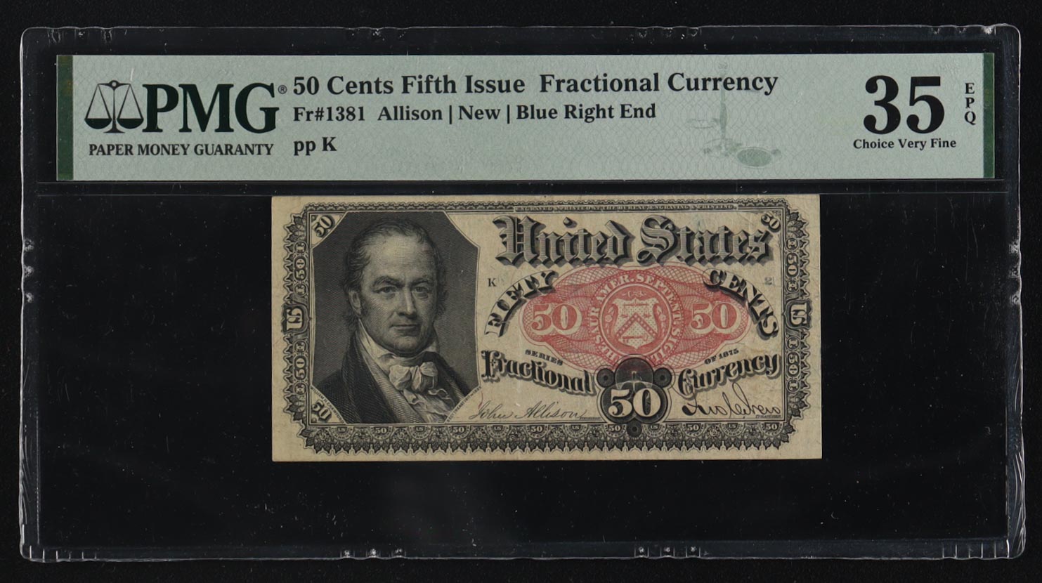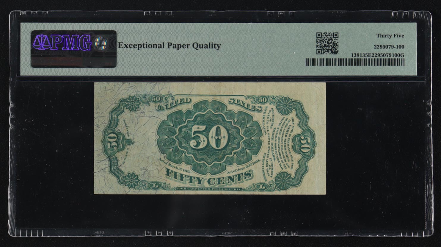 Fifth Issue 50 Cents Fractional Currency Note Blue Right End (PMG Choice Very Fine 35 EPQ)