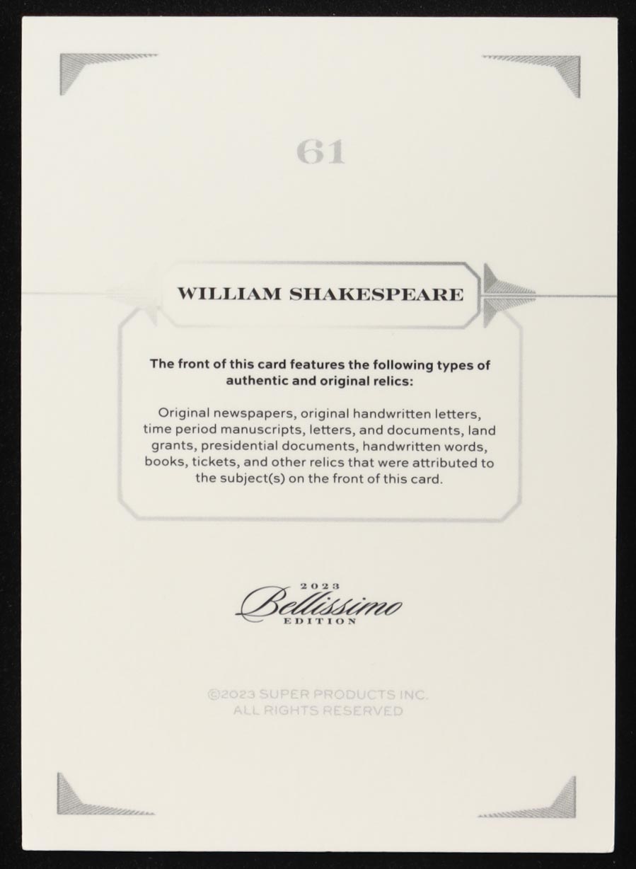 William Shakespeare 2023 Pieces Of The Past Bellissimo Edition Relic Silver Holo #61 #06/20