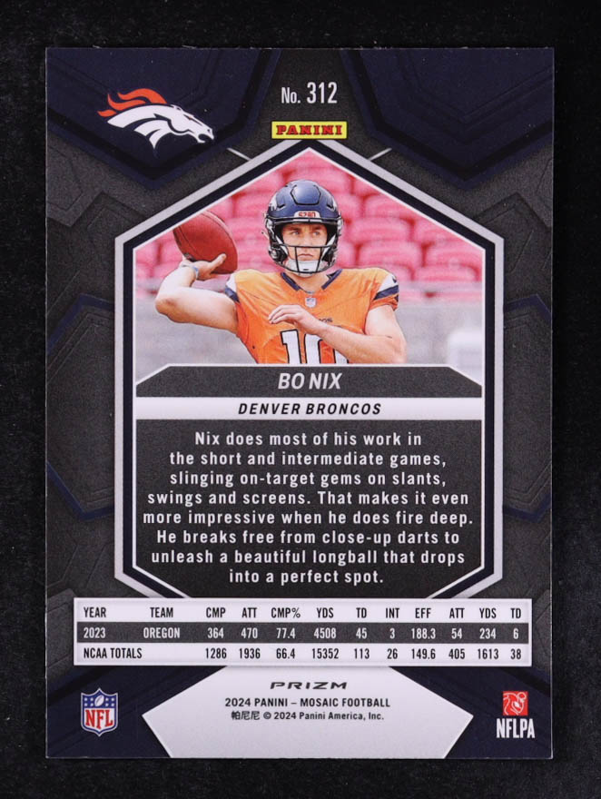 Bo Nix 2024 Panini Prizm Mosaic Green #312 RC