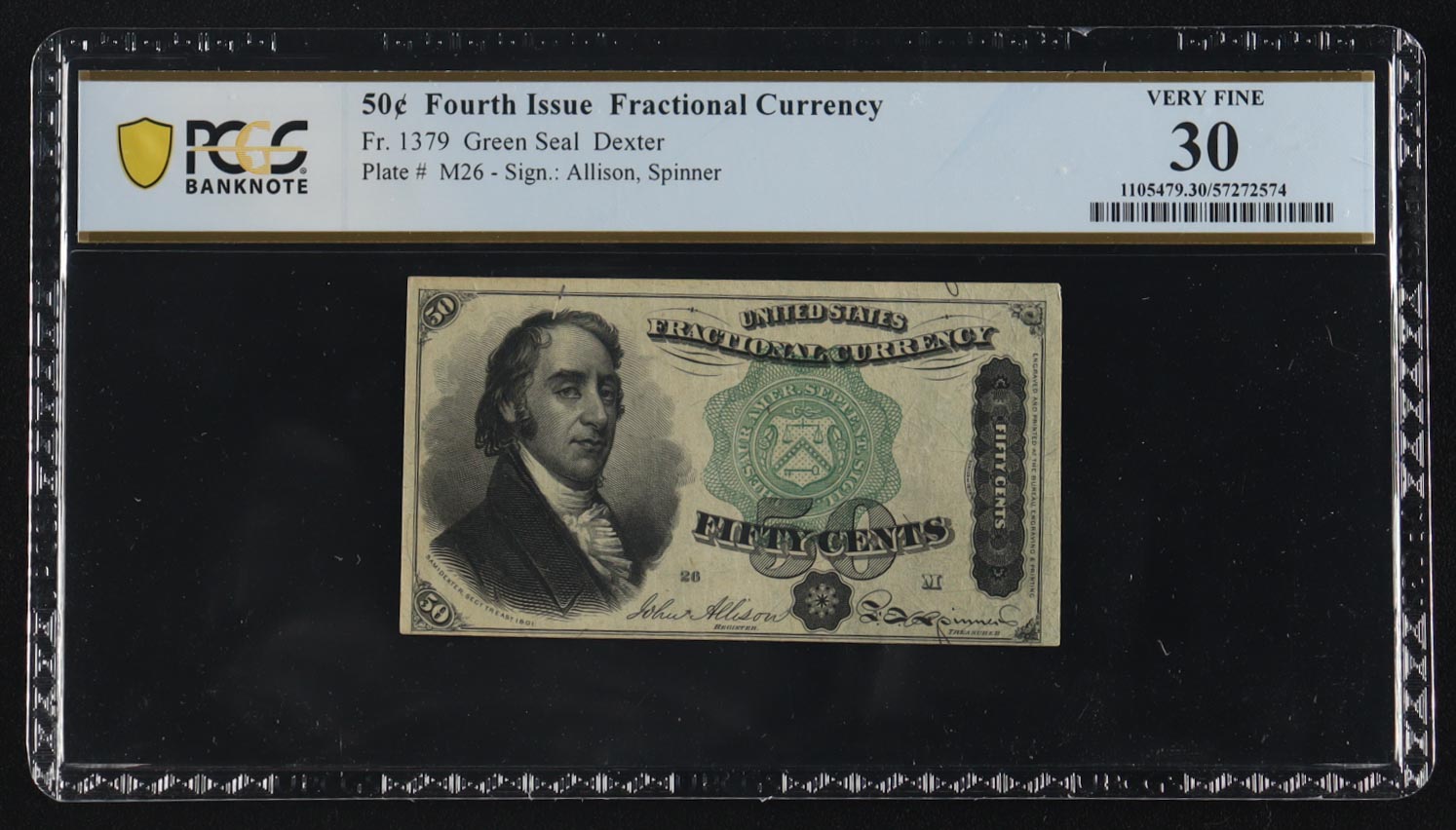 Fourth Issue 50 Cents Fractional Currency Note Green Seal (PCGS Very Fine 30)