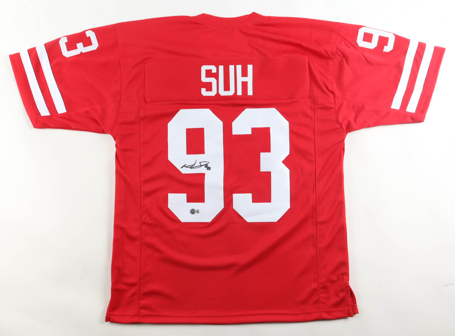 Custom jersey with everything sewn on, size XL. Hand-signed by Ndamukong Suh (Nebraska Cornhuskers).