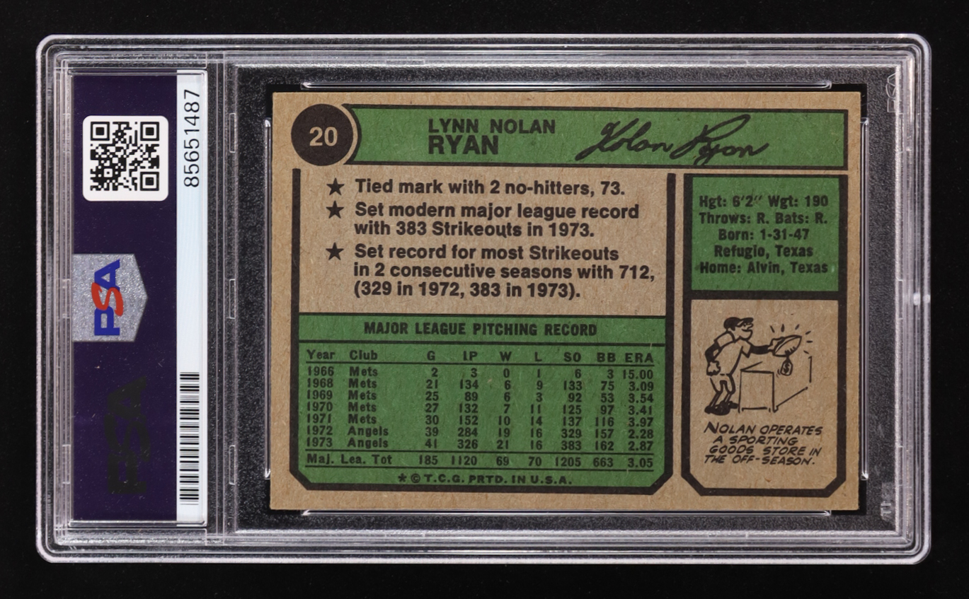 Nolan Ryan Signed 1974 Topps Inscribed "324 Wins 5,714 K'S" #20 (PSA | Autograph Graded PSA 10)