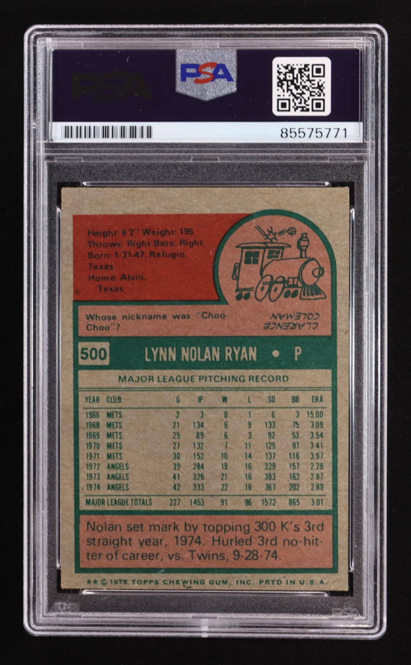 Nolan Ryan Signed 1975 Topps #500 Inscribed "108.5 M.P.H. Fastball" (PSA | Auto 10)
