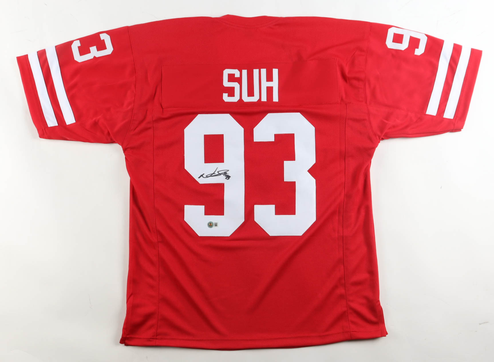 Custom jersey with everything sewn on, size XL. Hand-signed by Ndamukong Suh (Nebraska Cornhuskers).