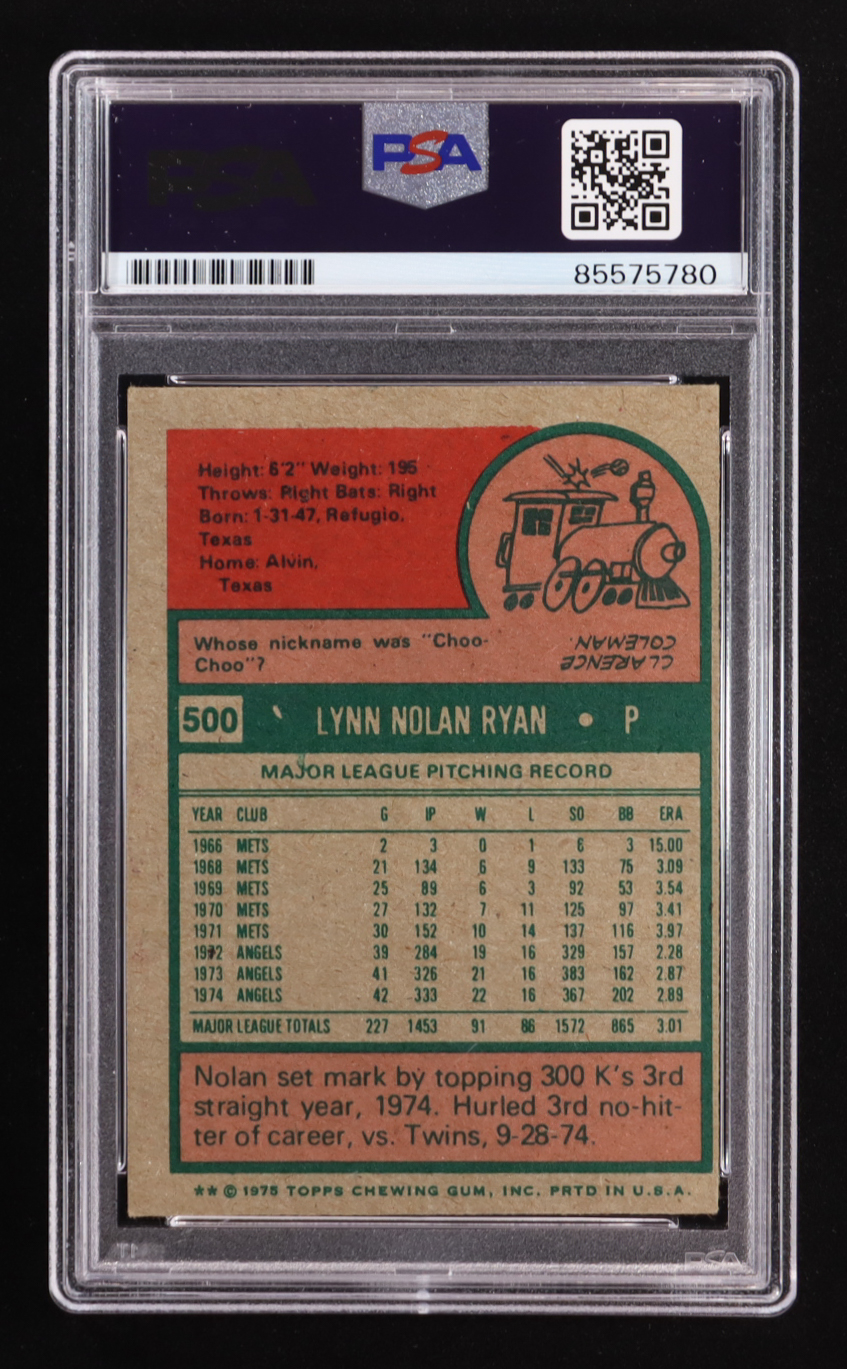Nolan Ryan Signed 1975 Topps #500 Inscribed "1975 K King" (PSA | Auto 10)