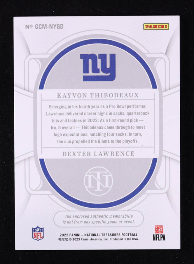 Kayvon Thibodeaux / Dexter Lawrence 2022 Panini National Treasures NFL Gear Combo Materials Holo Gold #25 #07/10