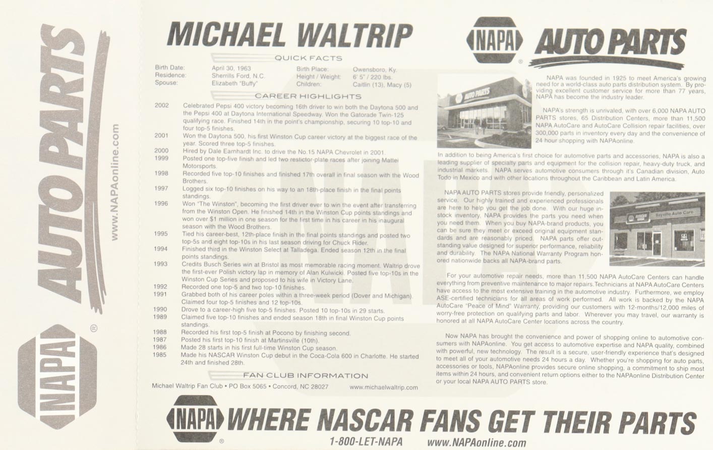 Michael Waltrip Signed NAPA Racing Promotional Picture Bio Jumbo Card (PSA)