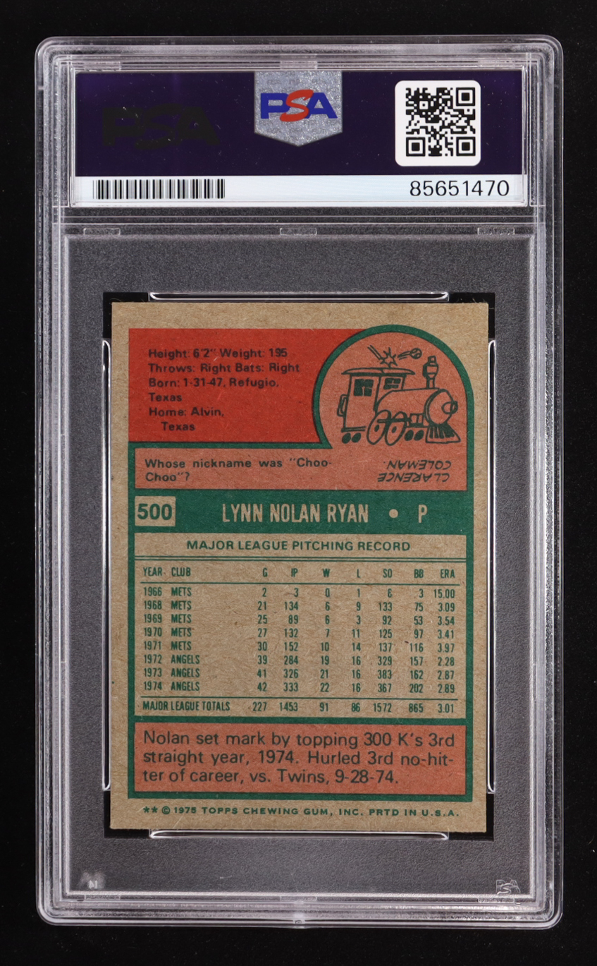 Nolan Ryan Signed 1975 Topps Mini #500 (PSA | Autograph Graded PSA 10)