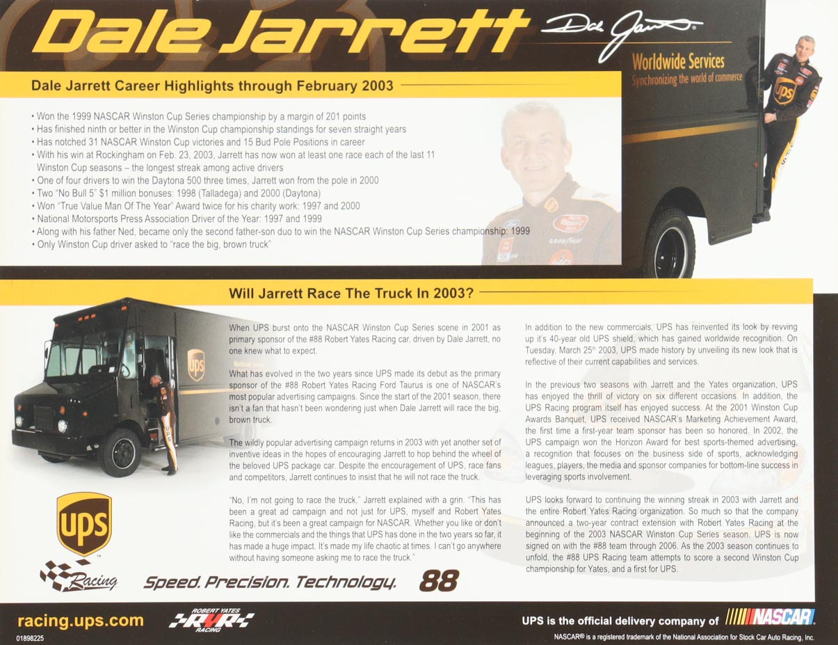 Dale Jarret Signed 2003 NASCAR Promotional Picture Bio Jumbo Card (PSA)