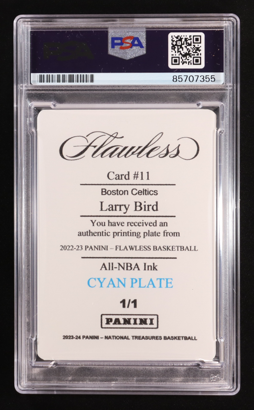 Larry Bird Signed 2022-23 Panini Flawless All-NBA Ink Autographs Printing Plates Cyan #11 #1/1 (PSA | Auto 10)