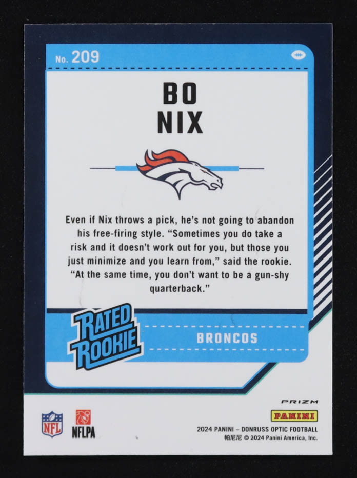 Bo Nix 2024 Donruss Optic Purple Shock #209 RR RC