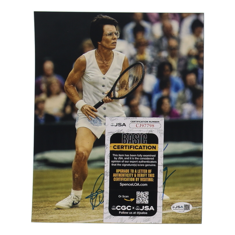 Photo measures 8” x 10” in size and has been hand-signed by Billie Jean King (HOF).