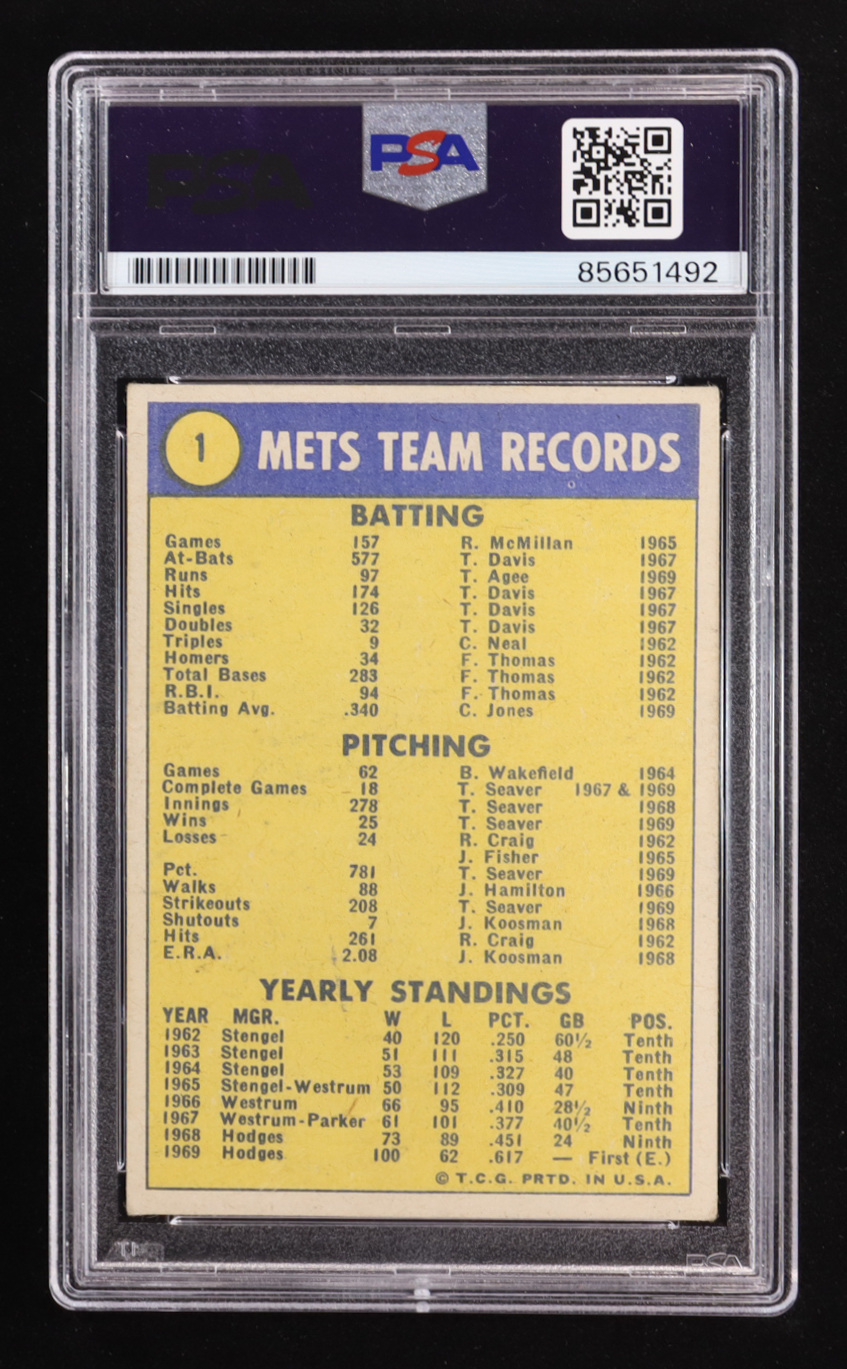 Nolan Ryan Signed 1970 Topps World Champions Team Card Inscribed "Miracle Mets" #1 (PSA | Autograph Graded PSA 10)