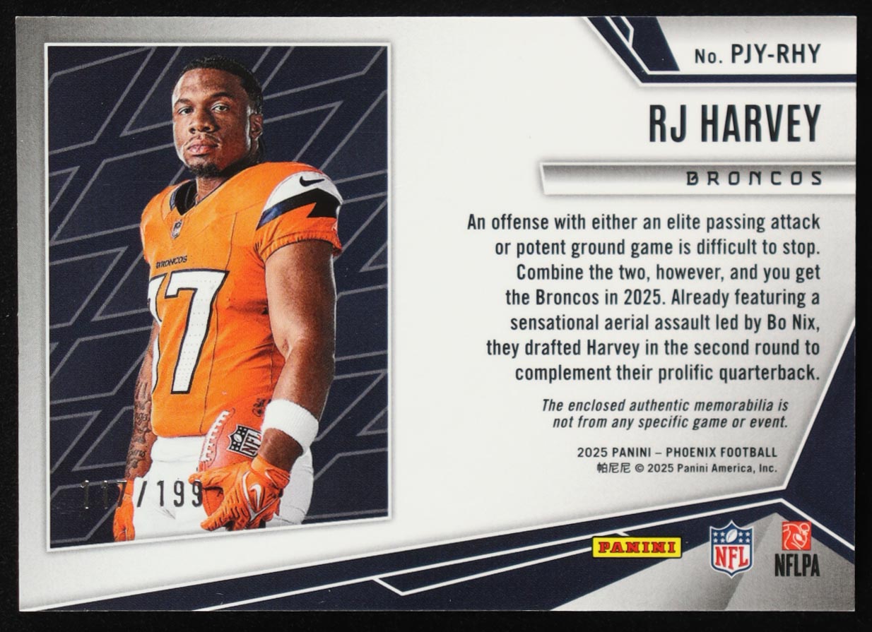 RJ Harvey 2025 Panini Phoenix Rookie Phenom Jerseys Blue #29 #117/199 RC