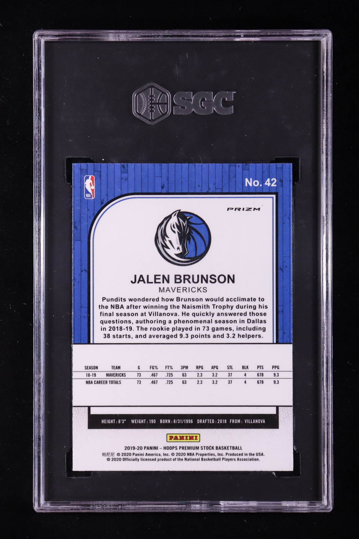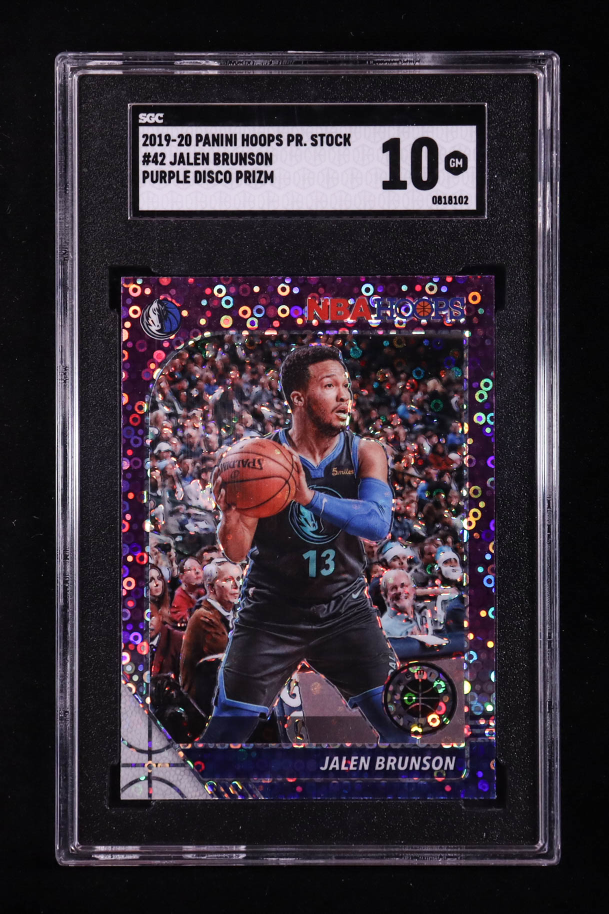 Jalen Brunson 2019-20 Hoops Premium Stock Prizms Purple Disco #42 (SGC 10)