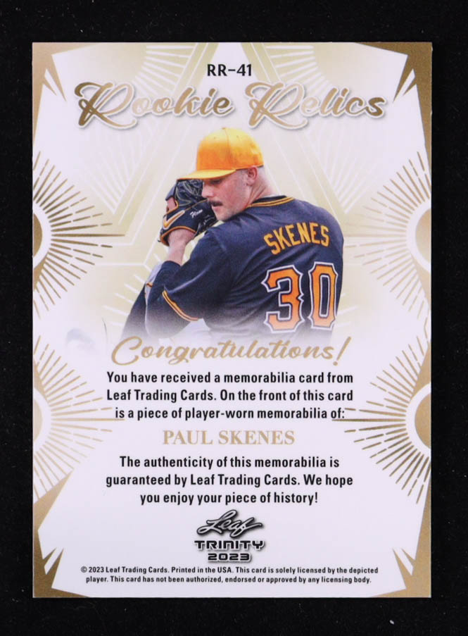 Paul Skenes 2023 Leaf Trinity Mega Box Rookie Relics #RR41 RC
