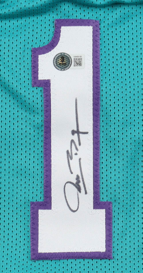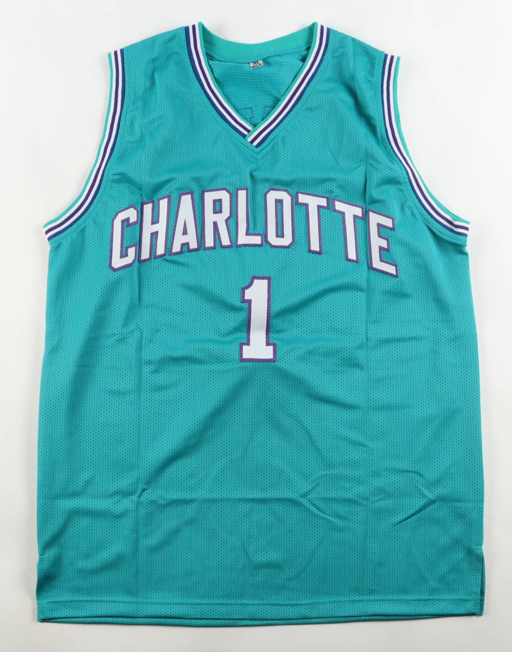 Custom jersey. Everything is sewn on, size XL. Hand-signed by Muggsy Bogues.