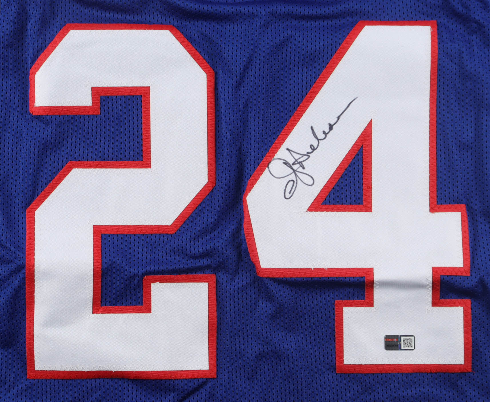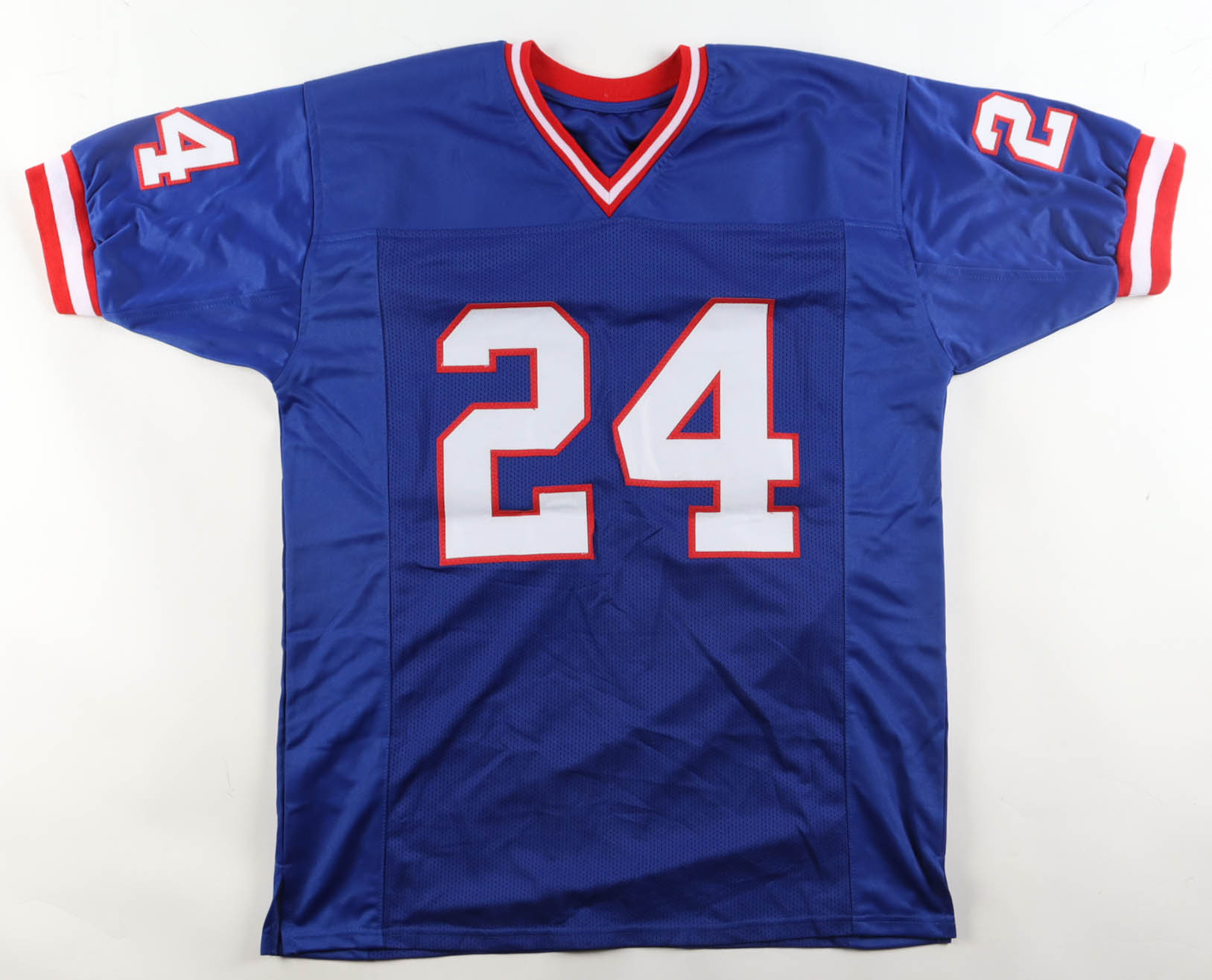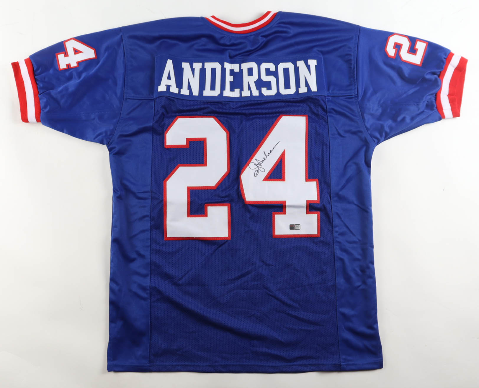Custom jersey with everything sewn on, size XL. Hand-signed by Ottis Anderson.