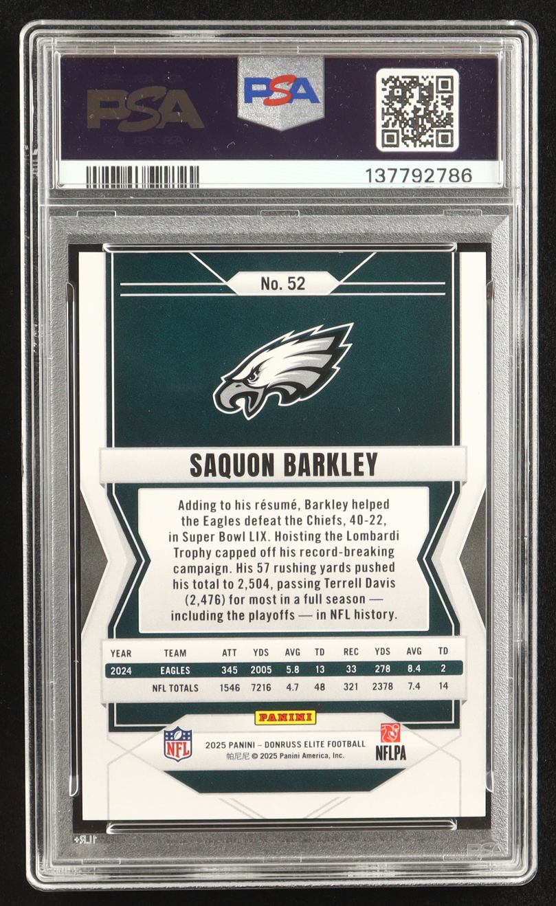 Saquon Barkley 2025 Elite FOTL Pink #52 #05/15 (PSA 8)