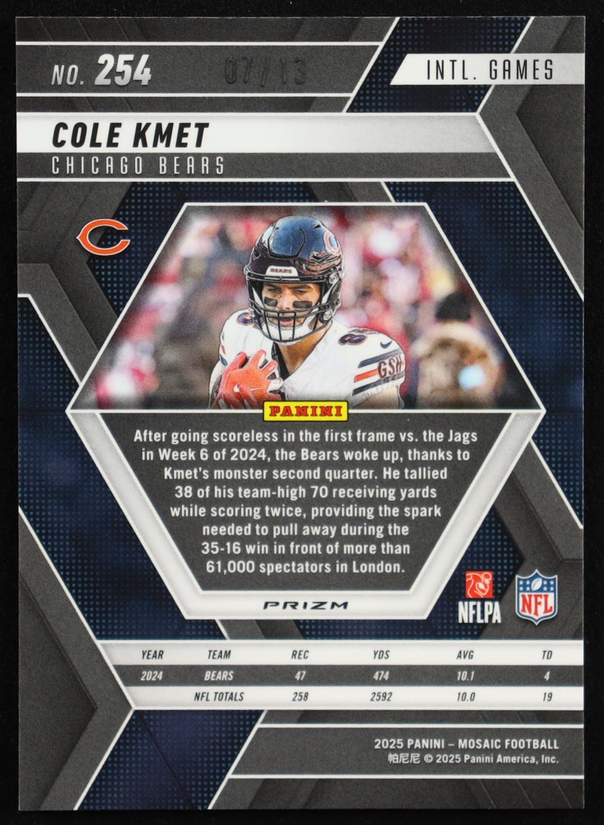 Cole Kmet 2025 Panini Mosaic Mosaic Green Spectris FOTL #254 #7/13