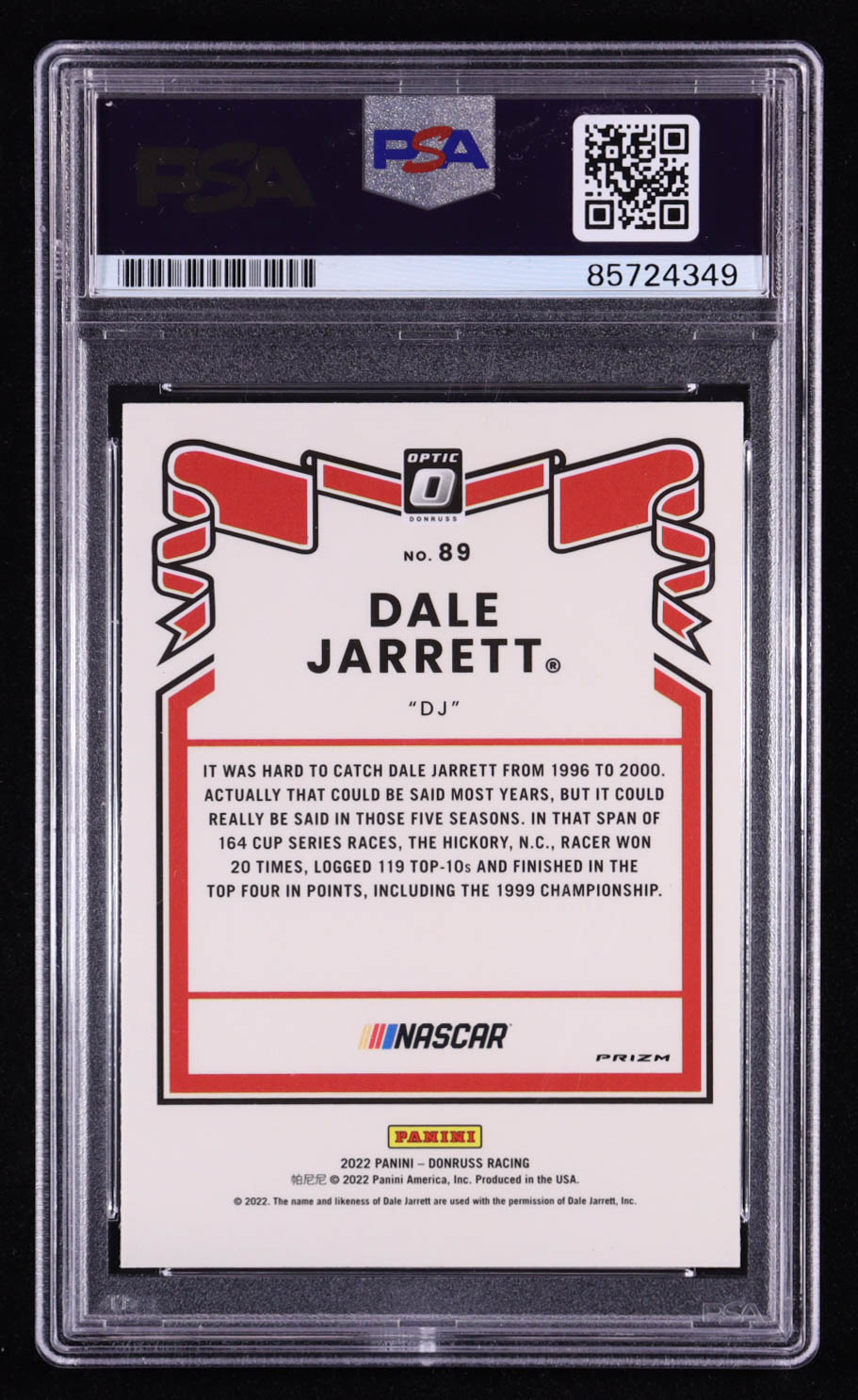 Dale Jarrett Signed 2022 Panini Donruss Optic Racing #89 (PSA)