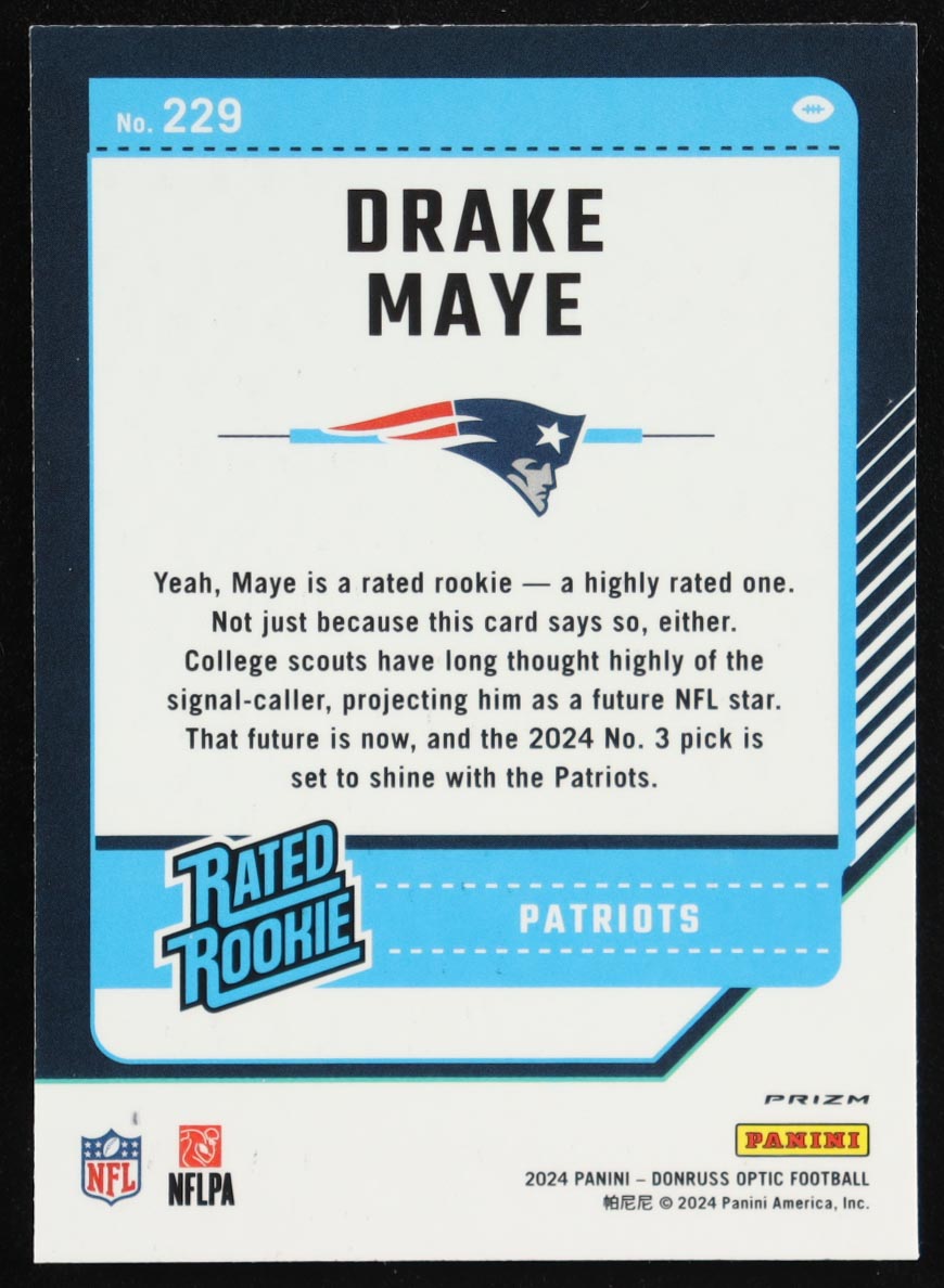 Drake Maye 2024 Donruss Optic Rated Rookie Purple Shock #229 RC
