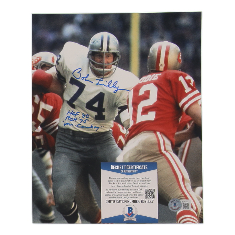 Bob Lilly Signed Cowboys 8x10 Photo Inscribed "HOF '80" & "ROH '75" & "Mr. Cowboy" (Beckett)