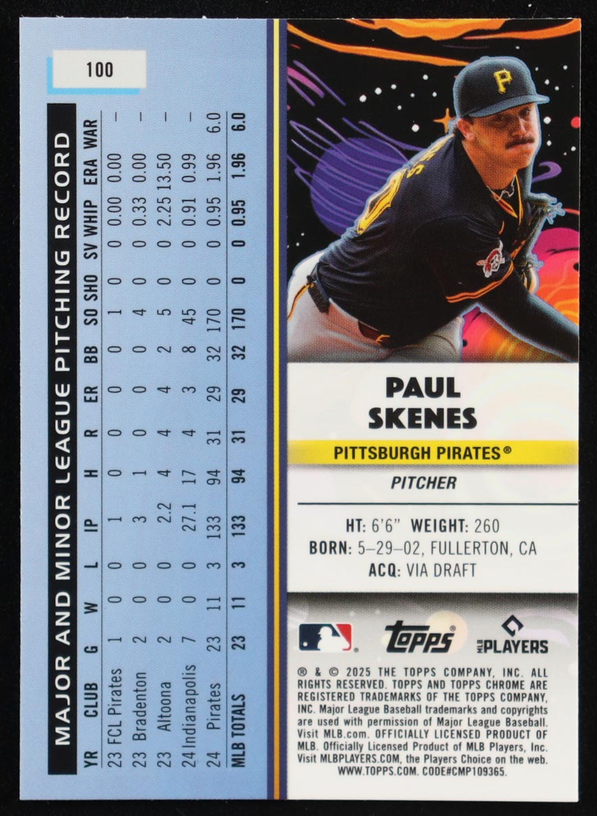 Paul Skenes 2025 Topps Cosmic Chrome Aqua Equinox Refractors #100 #58/199