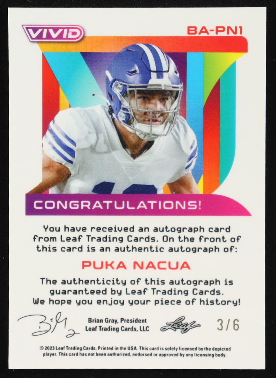 Puka Nacua 2023 Leaf Vivid Mojo Autographs #BAPN1 #3/6 RC