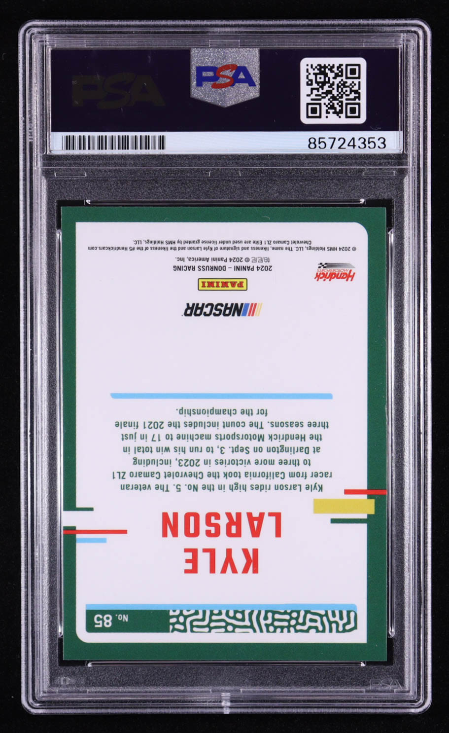 Kyle Larson Signed 2024 Panini Donruss Racing #85 (PSA)