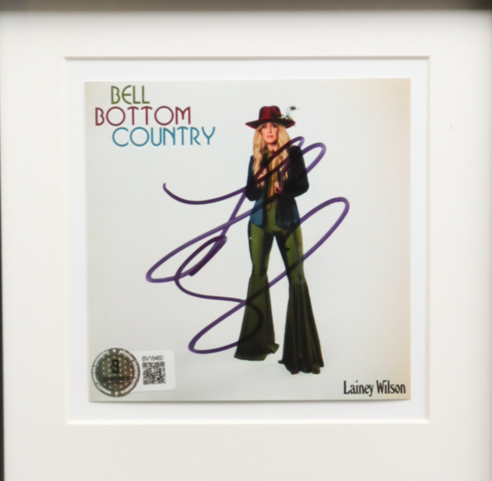 Custom frame measures approximately 8" x 13.5" in size. Features a "Bell Botton Country" CD insert that has been hand-signed by Lainey Wilson. Includes disc as shown.